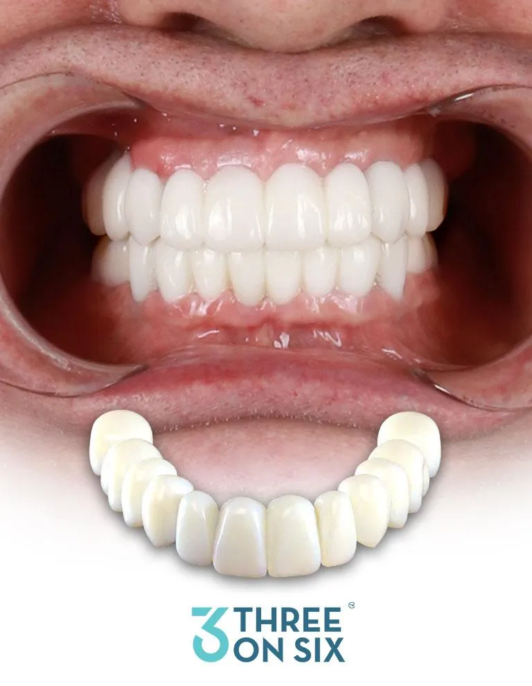 Your new 3 on 6™ smile will be beautiful and permanent. You don't have to ever remove it and can maintain it with simple brushing and flossing. You can smile, speak, kiss, and chew with confidence!